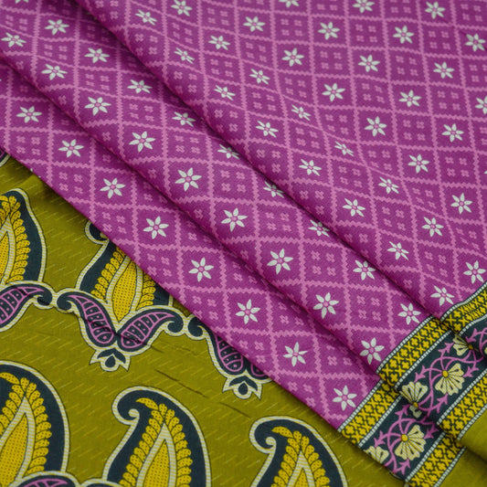 Indian Vintage Sari Purple & Green Pure Cotton Printed Saree 5Yd Craft Fabric Sewing Sarong Wrap Boho Floral Quilting crafting dressmaking