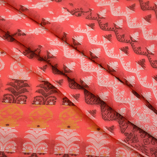 Indian Vintage Sarees Pink Pure Cotton Hand Woven Jamdani Sari 5yd Ethnic Floral Craft Fabric Dress making Upcycle Crafting Quilting Zari