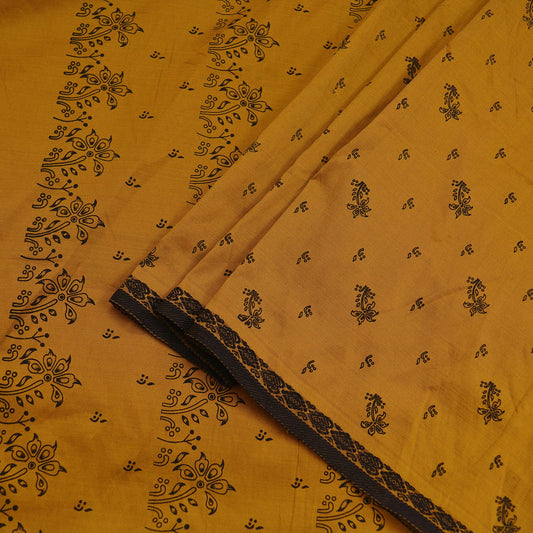 Indian Vintage Sari Saffron Pure Cotton Printed Saree Craft Soft Fabric 5Yard Sewing Sarong Wrap Paisley