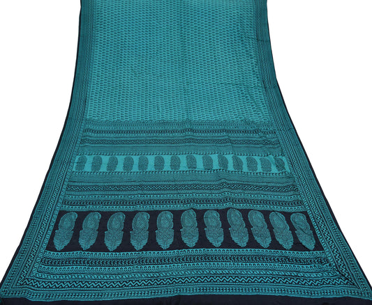 Indian Vintage Green & Black Sarees Hand Block Printed Sari Pure Silk Craft Fabric 6Yd Floral Soft Quilting Crafting Upcycle