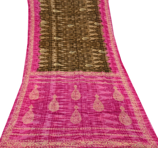 Indian Vintage Sari Pink & Brown Printed 100% Pure Cotton Saree Craft Fabric 5Yd Soft Sewing Sarong Wrap Boho Dress Making Quilting