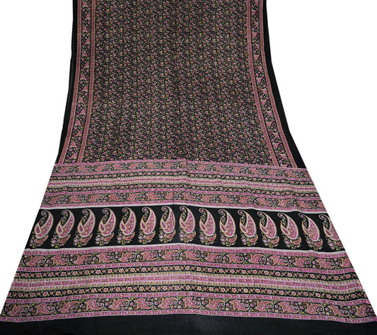 Indian Vintage Black Saree Printed Pure Cotton Sari Craft Fabric 5Yd Sewing Sarong Wrap Boho Floral Quilting Crafting Dress Making