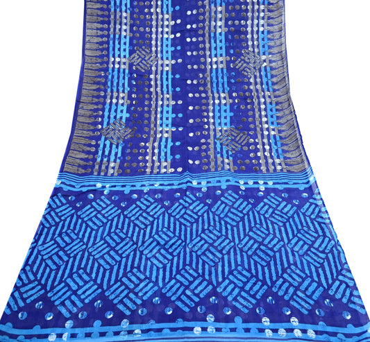 Indian Vintage Sari Blue Printed Pure Cotton Sarees 5Yd Craft Fabric Soft Sewing Sarong Wrap Boho Upcycle quilting Dress making