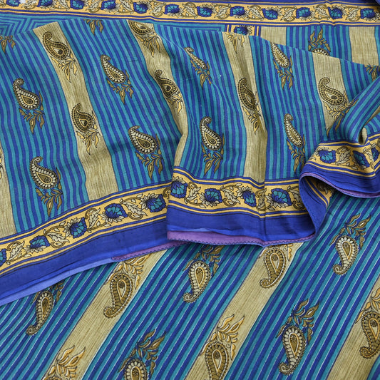 Indian Vintage Sari Blue & Green Pure Cotton Printed Sarees Craft Fabric 5Yd Soft Sewing Sarong Wrap Boho Floral Quilting Upcycle Crafting