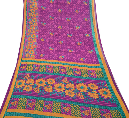 Indian Vintage Sari Purple & yellow Pure Cotton Printed Sarees Craft Fabric Soft 5Yd Sarong Wrap Boho Fabric Kimono Quilting Crafting