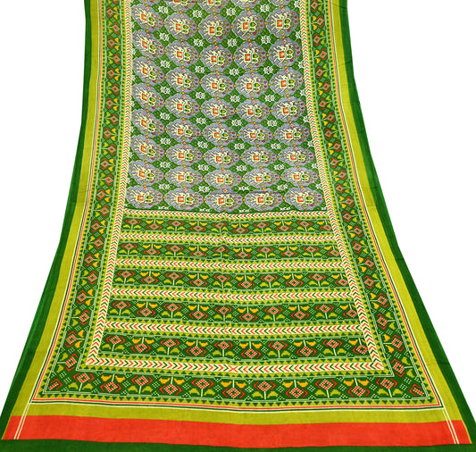 Indian Vintage Sari Green & Orange Printed Pure Cotton Sarees Craft Soft Fabric 5Yd Sewing Sarong Wrap Boho Floral Upcycle Dress making
