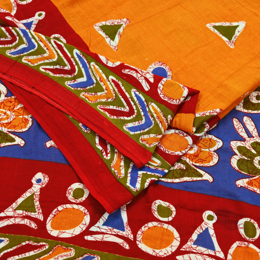 Indian Vintage Sari Red & Saffron Batik Printed 100% Pure Cotton Saree Craft Soft Fabric 5Yard Sewing Sarong Wrap Boho Dress making Quilting
