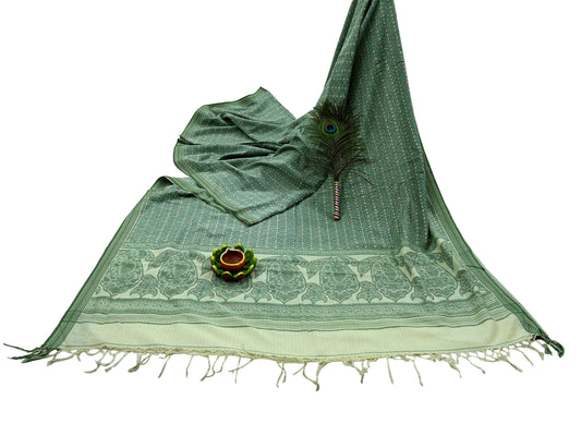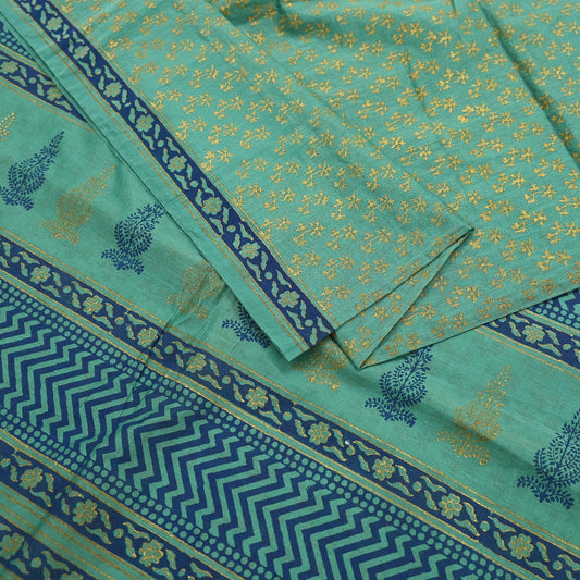 Indian Vintage Green Saree Hand Block Printed/Painted Cotton Sari Craft Fabric 6Yd Dress making Crafting Upcycle Quilting Dress Designing