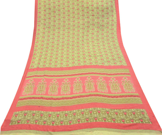 Indian Vintage Sari Pink Pure Cotton Hand Woven Sarees Craft Fabric 5yd Ethnic Paisley Crafting Upcycle Quilting Dress Making