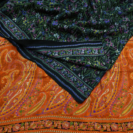 Indian Vintage Black & Orange Saree 100% Pure Silk Printed Sari Craft Fabric 5yd Sewing DressMaking Soft Quilting Upcycle For Crafting