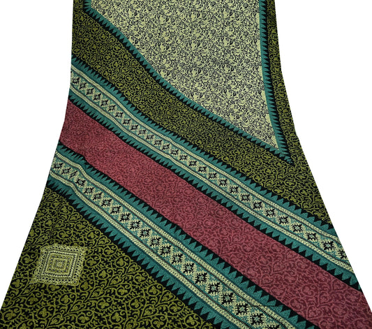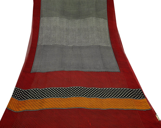 Indian Women Vintage Red & Black Saree 100% Pure Georgette Silk Printed Sari Sewing 5yd Soft Craft Fabric Stripes Dress Making Crafting