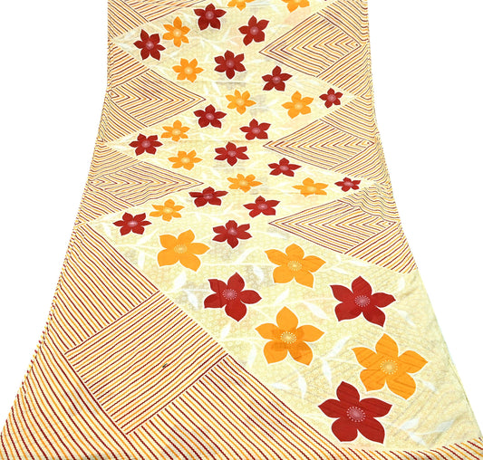 Indian Vintage Sari Ivory Printed Pure Cotton Sarees Craft Fabric Soft Floral 5Yd Sarong Wrap Boho Kimono Dress making Quilting Crafting