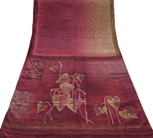 Indian Vintage Maroon & Brown Sarees Pure Crepe Silk Printed Sari 5yd Sewing Floral Soft Craft Fabric Ethnic Wrap Dress making For Crafting