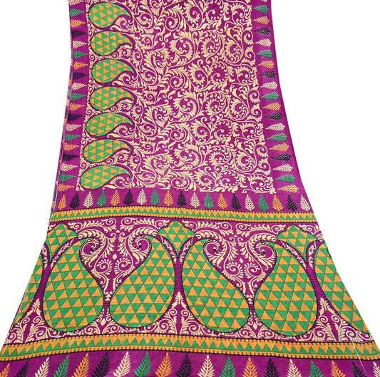 Indian Vintage Multi Saree 100% Pure Silk Printed Sari Craft Fabric 5yd Sewing Dress Making Soft Floral Crafting Quilting Upcycle