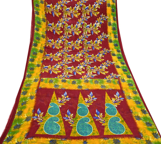 Indian Vintage Maroon Saree Pure Crepe Silk Printed Sari 5yd Sewing Floral Soft Craft Fabric Ethnic Wrap Dress making For Crafting Quilting
