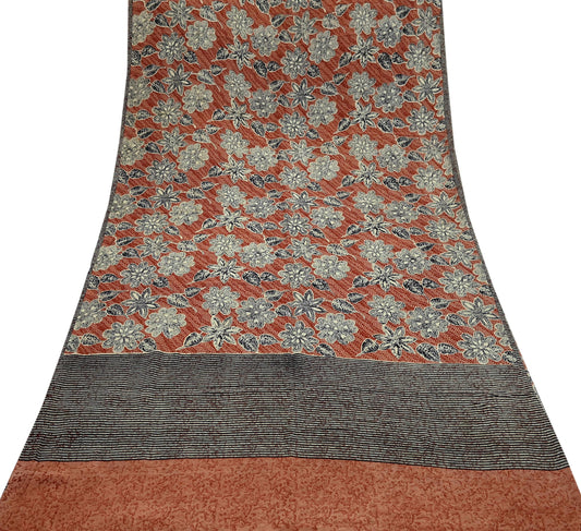 Indian Vintage Brown & Saffron Saree Printed Pure Cotton Indian Sari Craft Fabric 5Yd Soft Sewing Sarong Wrap Boho Floral Dress making