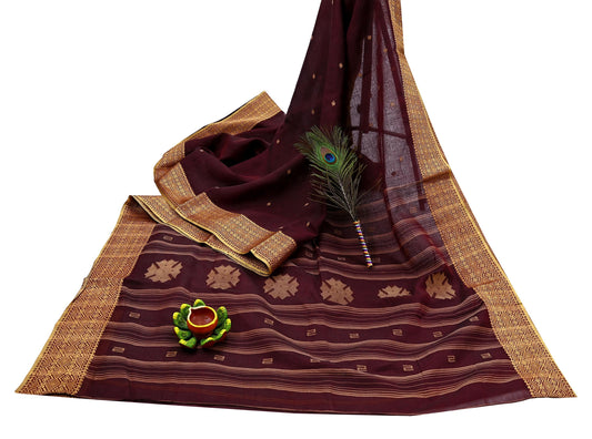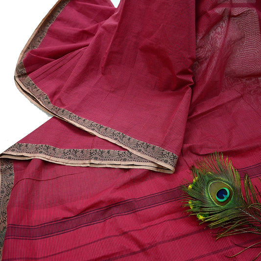 Indian Vintage Sari Maroon Pure Cotton Hand Woven Sarees Craft Fabric 5yd Ethnic Floral Crafting Upcycle Quilting Dress Making