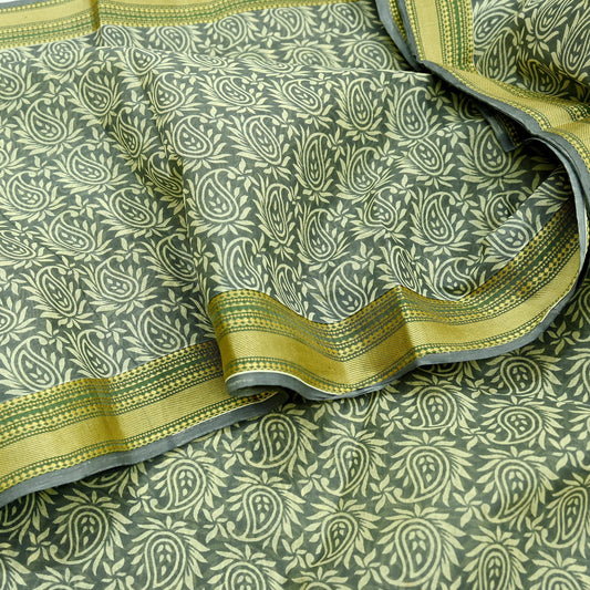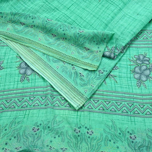 Indian Vintage Green Saree Printed Pure Cotton Sari Craft Fabric 5Yd Soft Sewing Sarong Wrap Boho Floral Upcycle Quilting For Crafting