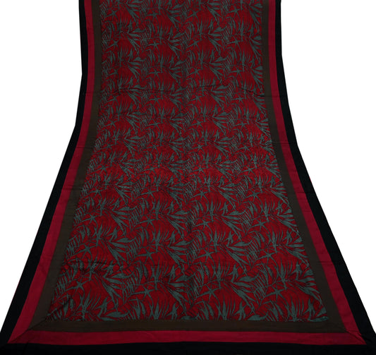 Indian Vintage Maroon & Gray Sarees Moss Crepe Printed Sari 5yd Sewing Floral Soft Craft Fabric DressMaking For Crafting Quilting Upcycle