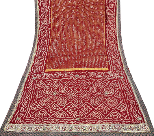 Indian Vintage Maroon Saree Hand Embroidered Bandhani Printed Sari 100% Pure Silk Indian Sari Fabric 5yard Soft Craft Fabric Beaded