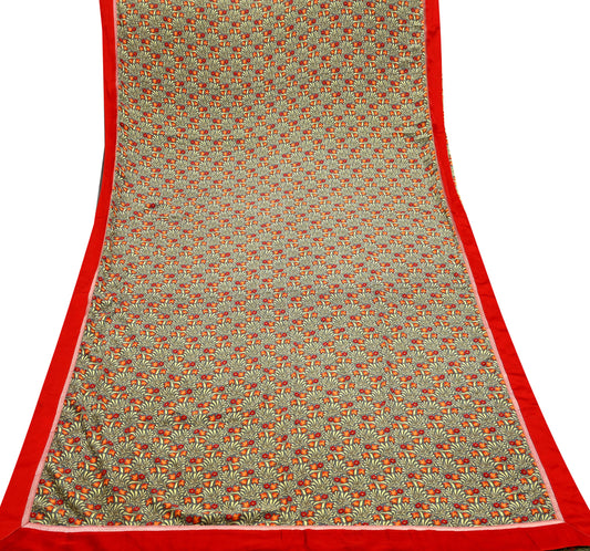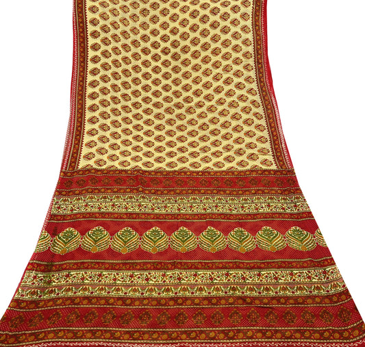 Indian Vintage Red & Beige Saree Printed 100% Pure Cotton Sari Craft Fabric 5Yd Soft Sewing Sarong Wrap Dress Making Quilting Crafting