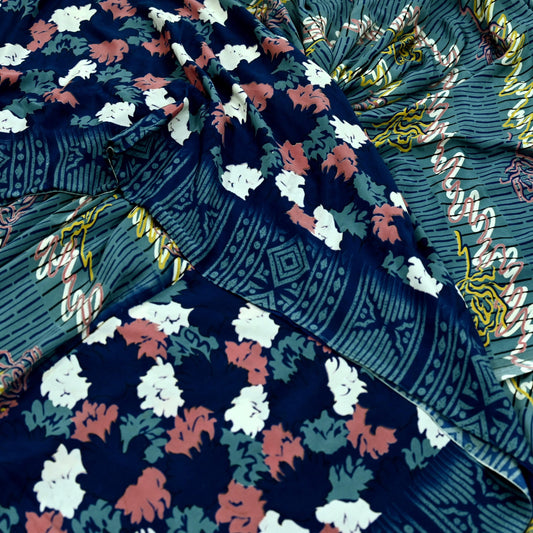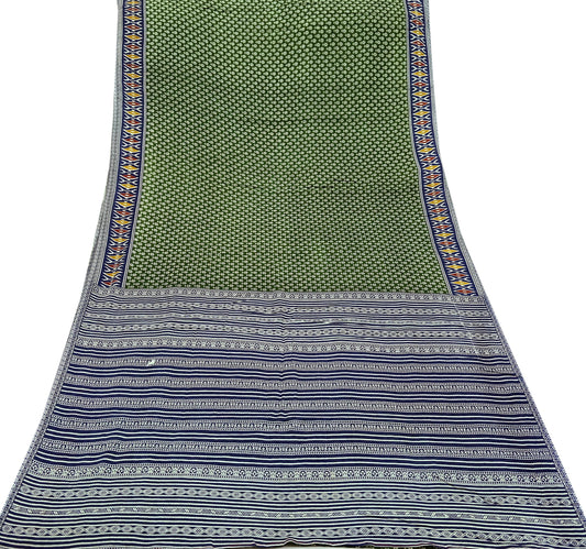 Indian Vintage Sari Blue & Green Pure Cotton Printed Sarees Craft Fabric 5Yd Soft Sewing Sarong Wrap Boho Floral Quilting Upcycle Crafting
