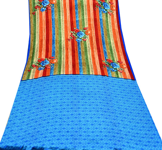 Indian Vintage Blue Saree Pure Crepe Silk Printed Sari Craft Fabric 5yd Sewing Paisley Soft Craft Fabric Wrap Dress making Quilting Upcycle