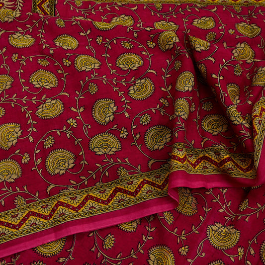 Indian Vintage Maroon Saree Pure Crepe Silk Printed Sari Craft Fabric 5yd Sewing Floral Soft Wrap Dress Making Crafting Quilting Upcycle