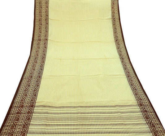 Indian Vintage Sari Brown & Beige Pure Cotton Hand Woven 5Yd Sarees Soft Floral Ethnic Craft Fabric Sewing Dress making Crafting Quilting