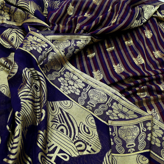 Indian Vintage Sari Pure Cotton Hand Woven Saree Craft Fabric 5yd Sewing Ethnic Soft Dress making Crafting Quilting Dress Designing Zari