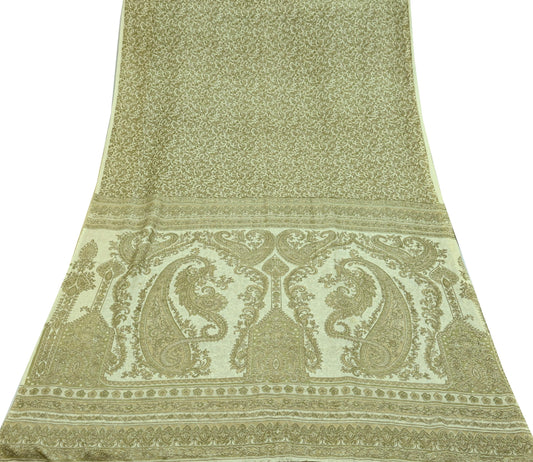 Indian Vintage Ivory Saree Pure Silk Printed Sari 5yd Sewing Craft Fabric Dress Making Soft Crafting Quilting Quilting Upcycle Paisley
