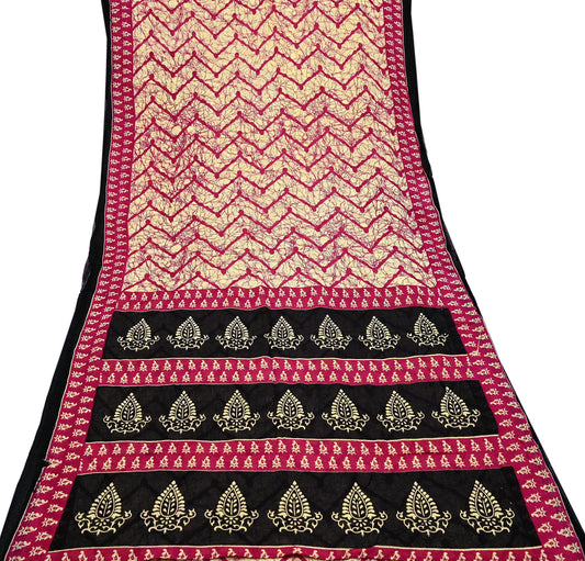 Indian Vintage Sari Pink & Beige Block Printed Pure Cotton Sarees 6Yd Craft Fabric Sewing Sarong Wrap Boho Upcycle quilting Dress making