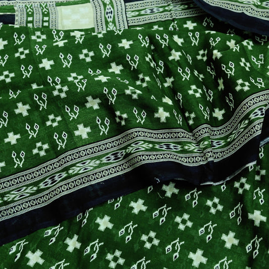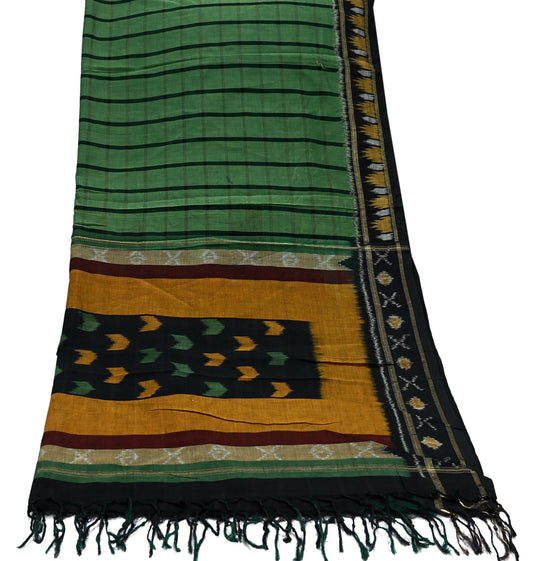 Indian Vintage Dupatta Green Long Stole Hand woven Sambalpuri Ikat Hijab Pure Cotton Indian Scarves Veil