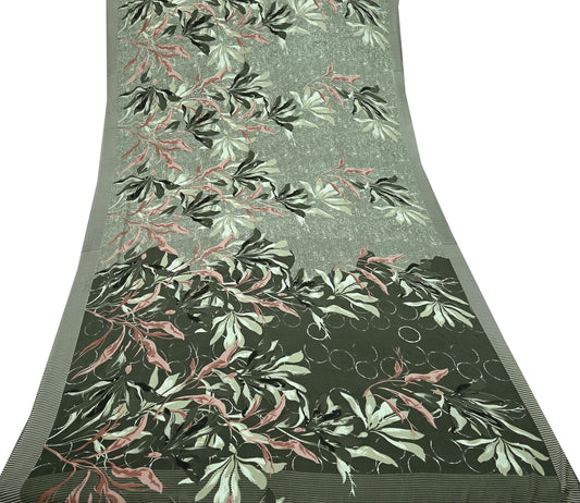 Indian Vintage Green Saree Moss Crepe Printed Sari Craft Fabric 5yd Sewing Floral Soft Dressmaking Dress Designing Quilting Upcycle