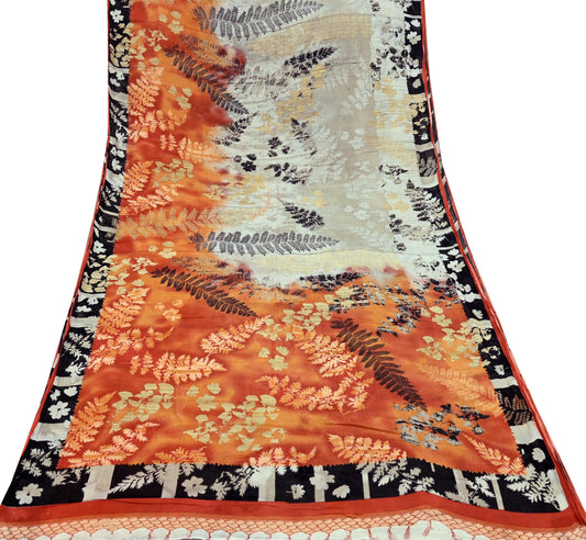 Indian Vintage Orange & Cream Saree Printed Pure Cotton Sari Craft Fabric Soft 5Yd Sewing Sarong Wrap Boho Dress making Quilting Upcycle