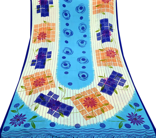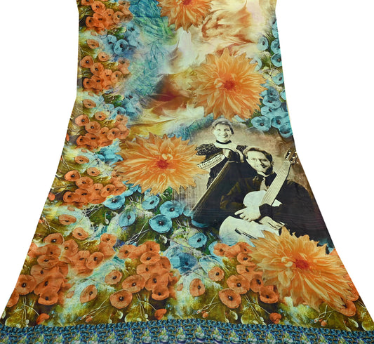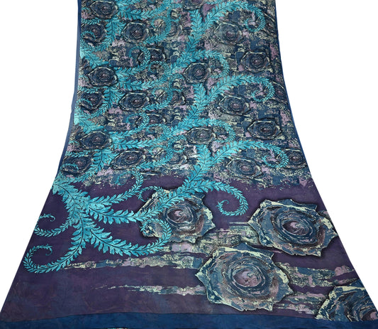 Indian Vintage Multi Saree Pure Georgette Silk Digital Printed Sari Sewing 5yd Craft Fabric Soft Floral Crafting Dress Making Quilting