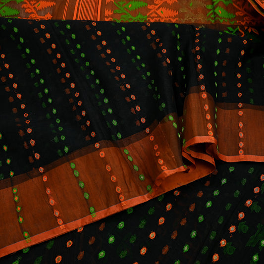 Indian Vintage Sarees Black Cotton Hand Woven Jamdani Sari 5yd Ethnic Floral Craft Fabric Dress making Upcycle Crafting Quilting
