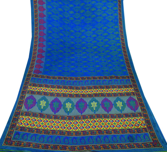 Indian Vintage Blue Saree Moss Crepe Printed Sari 6yd Sewing Paisley Soft Craft Fabric Dressmaking For Crafting Quilting Upcycle Boho