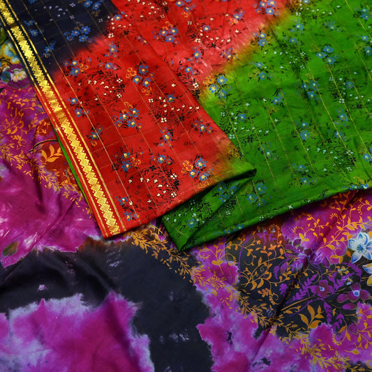 Indian Vintage Multi Saree 100% Pure Silk Printed Sari Craft Fabric 5yd Sewing Dress Making Soft Floral Crafting Quilting Upcycle Zari