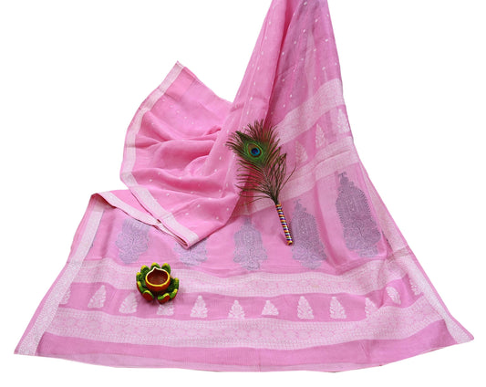 Indian Vintage Sari Baby Pink Pure Cotton Hand Woven Sarees Craft Fabric 5yd Ethnic Crafting Quilting Dress Making Quilting Upcycle