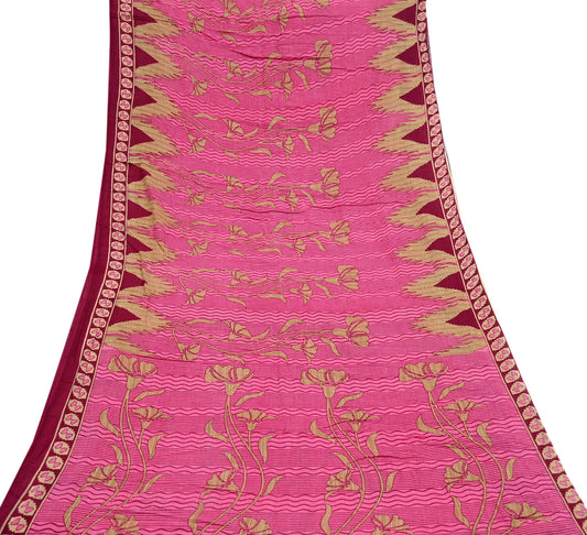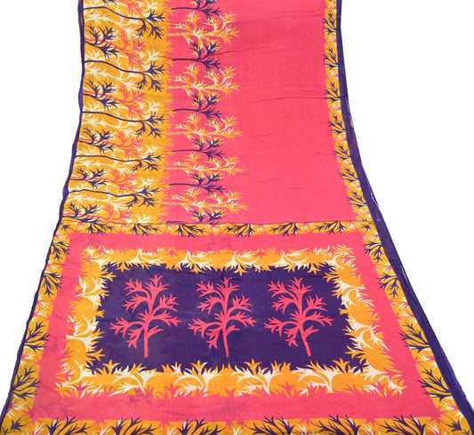 Indian Vintage Sari Pink & Saffron Printed 100% Pure Cotton Sarees Craft Fabric 5Yd Soft Sewing Sarong Wrap Floral Boho Quilting Crafting