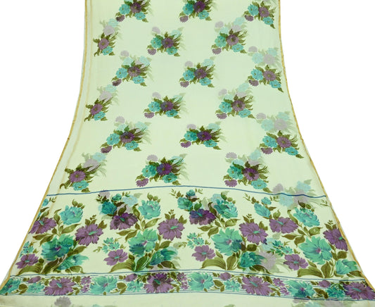 Indian Vintage Multi Saree 100% Pure Georgette Silk Printed Sari Sewing 5yd Craft Soft Dress Designing for Crafting Floral Quilting Upcycle