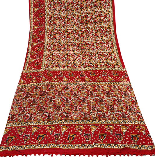 Indian Vintage Red Sarees Pure Cotton Printed Sari 5yd Sewing Craft Fabric DressMaking Soft Crafting Quilting Upcycle