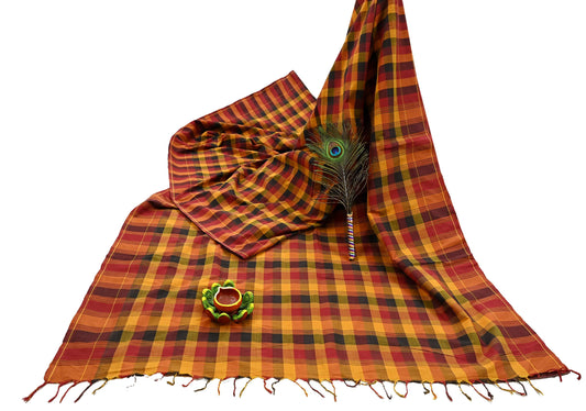 Indian Vintage Sari Woven 100% Pure Cotton Sarees Craft Fabric 5Yd Check Design Upcycle Quilting Crafting Dress making Upcycle Boho Wrap