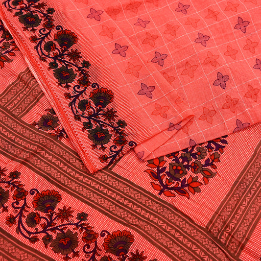 Indian Vintage Sari Peach Printed 100% Pure Cotton Sarees Craft Fabric Soft 5Yd Sewing Sarong Wrap Boho Floral Quilting Crafting