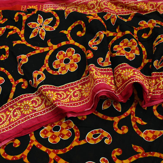 Indian Vintage Sari Red & Black Printed 100% Pure Cotton Saree Craft Fabric 5Yard Sewing Sarong Wrap Boho Floral