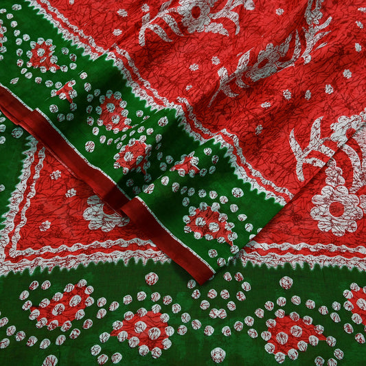 Indian Vintage Sari Red & Green Batik Printed Saree 100% Pure Cotton 5Yd Craft Fabric Soft Sewing Sarong Wrap Boho Quilting Dress Making