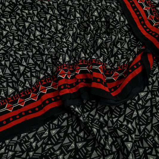 Indian Vintage Sari Red & Black Printed 100% Pure Cotton Sarees Craft Fabric 5Yard Sewing Sarong Wrap Boho Floral Dress making Quilting Soft