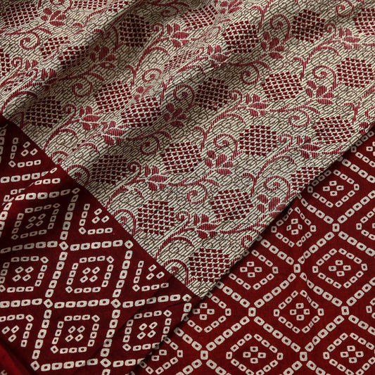 Indian Vintage Sari Maroon & Beige Pure Cotton Bandhani Printed Sarees 5yd Sewing Craft Fabric Dress Making Soft Sarong Quilting Crafting