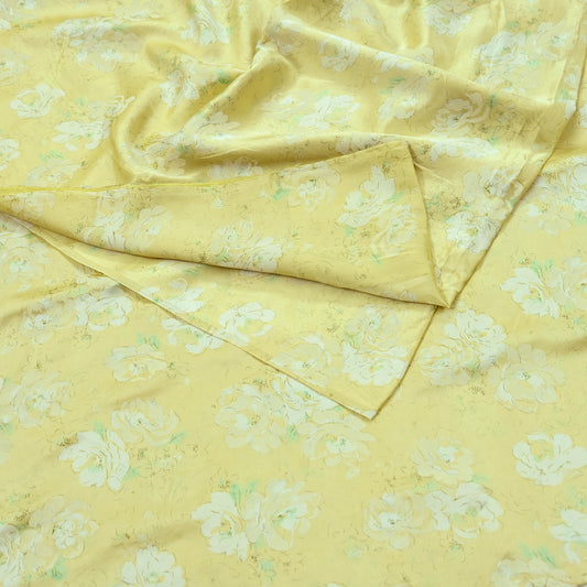 Indian Vintage Saree Ivory Pure Satin Silk Digital Printed Sari 6yd Sewing Floral Soft Craft Fabric Dress Making Crafting Quilting